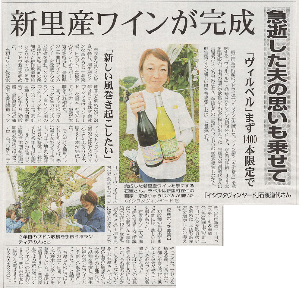新里産ワインが完成 急逝した夫の思いも乗せて 「ヴィルベル」まず1400本限定で 2025/09/27